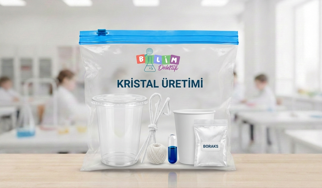 • Açıklama: Sabır ve bilimin birleştiği bu deneyde; beyaz şönil, beyaz ip ve boraks kullanarak kristallerin nasıl büyüdüğünü gözlemliyoruz.